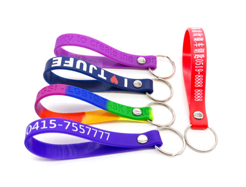 产品名称: 硅胶钥匙挂饰产品颜色: 单色/彩色/自定义适用产品: 纪念品,精美手饰,推广品牌 特征: 硅胶饰品具有环保,无毒无味,并且弹性好;耐磨损,耐高温,不变形等特点可以做单色、双色、三色以及与其他颜色混合。定制:LOGO、文字、图案。